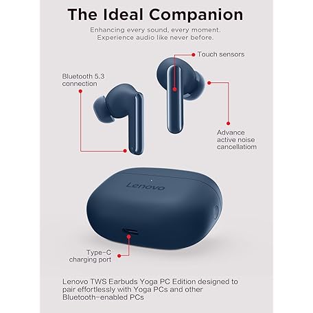 Thông tin sản phẩm Lenovo TWS Earbuds Yoga PC Edition Cosmic Blue Active Noise Cancellation Bluetooth 5.3 Wireless Earbuds ENC 3-Mic Clear Calls AI EQ Mode Switch for Gaming, Movies, Music, and Meetings