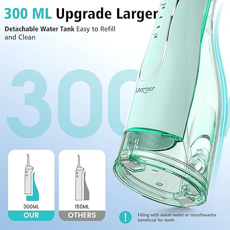 Thông tin sản phẩm Leominor Water Dental Flosser Pick for Teeth, 300ML Portable Oral Irrigator Upgraded Tank Removable,IPX7 Waterproof, Rechargeable Travel Teeth Cleaner, Professional Electric Flossing (Green)