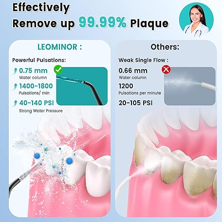Thông tin sản phẩm Leominor Water Flosser Pick for Teeth, 300ML Portable Oral Irrigator Upgraded Tank Removable,IPX7 Waterproof, Rechargeable Travel Teeth Cleaner, Professional Electric Flossing Machine (Black)