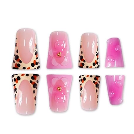 Sản phẩm Leopard French Tips Press on Nails Medium Duck Fake Nails with Pearl Flower Charm Design Ombre Pink False Nails Glossy Skin Tones Stick on Nails Summer Glue on Nails for Women Girls Manicure 24Pcs đang được bán với giá ưu đãi là $9.7991 tại nước Mỹ.