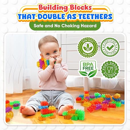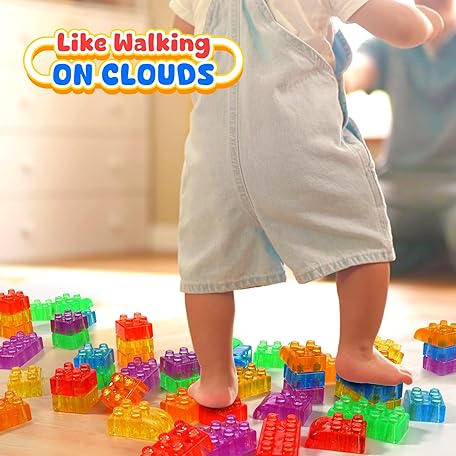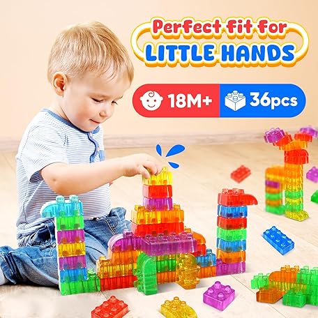 LESONG Sensory Soft Building Blocks for Toddlers:36 Pcs Jelly Squishy Stacking Blocks for Toddlers 1-3, Sensory Toys for Kids with Autism, Travel Baby Learning Toys Birthday Gifts Girls Boys