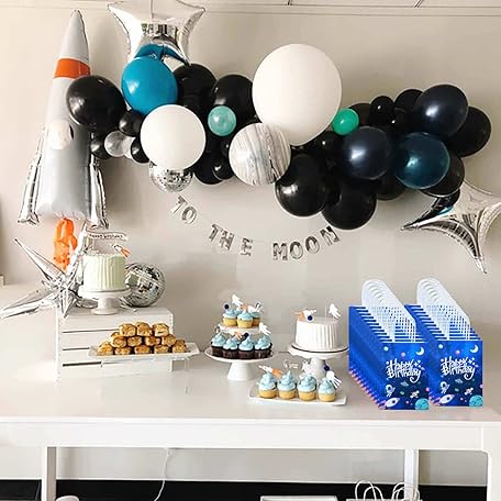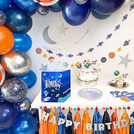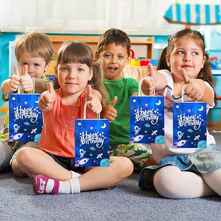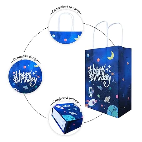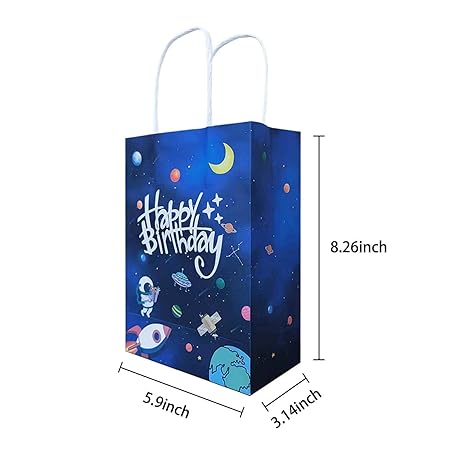 LetDec Two the Moon Present Bags Astronaut Happy Birthday Party Treat Bags with Handles Outer Space Party Candy Bags for Space Man/Robot/Galaxy/UFO Theme Happy Bday Party Supplies Decorations