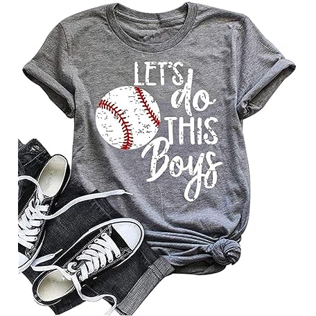• Let's Do This Boys T Shirts Womens Funny Baseball Mama Graphic Tee Shirts Mom Life Cute Short Sleeve Casual T-Shirt Tops