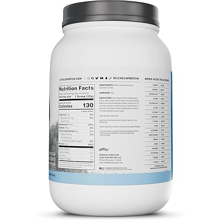 Thông tin sản phẩm Levels Grass Fed Whey Protein Powder, No Artificials, 25G of Protein, Unflavored, 2LB