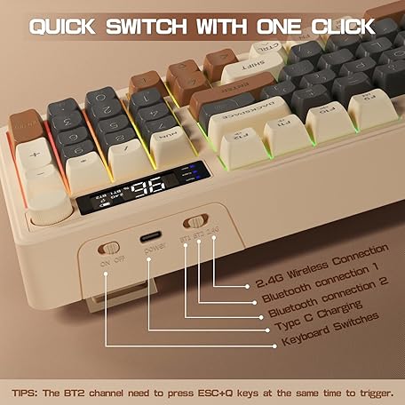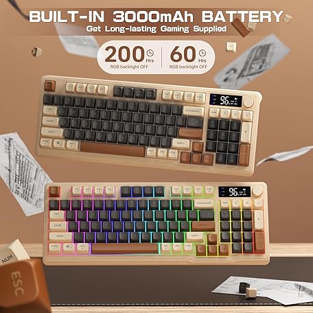 Thông tin sản phẩm LexonElec M96 Wireless Gaming Keyboard,Knob Control Bluetooth/2.4G Wireless Mechanical Feeling Keyboard,RGB LED Backlit with Display Screen, PBT Keycap, 3000mAh, 94-Key Layout for Win/Mac(Coffee)