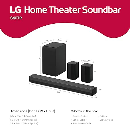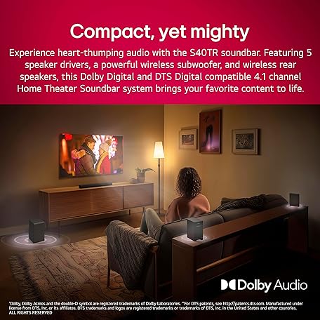 Thông tin sản phẩm LG S40TR 4.1 ch. Home Theater Soundbar with Rear Surround Speakers and Wireless Subwoofer, Wow Interface, Dolby Audio, AI Sound Pro, 2024 Model, Amazon Exclusive