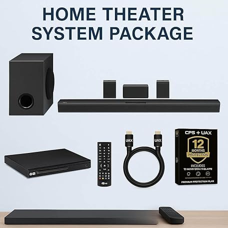 LG SQC4RKIT1 Sound Bar and DVD Player with 12 Mo CPS, HDMI Cable, 4.1 Channel Home Theater System, Wireless Subwoofer and Rear Speakers, Dolby Digital Surround Sound, Bluetooth, Wall Mountable, Black