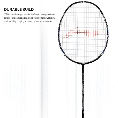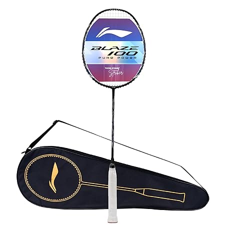LI-NING Blaze 100 Carbon Fibre Strung Badmiton Racket with Free Full Cover (Black/Silver/Navy, 84 Grams)