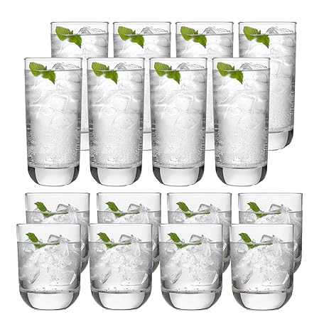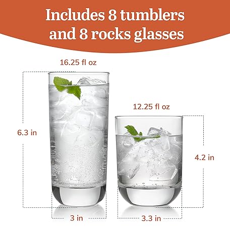 Thông tin sản phẩm Libbey 31631 Polaris 16-Piece Tumblers and Rocks Glass Set, Drinkware Glasses Set of 15.2 Oz Tumbler & 11.1 Oz Rock Glasses, Clear Drinking Glasses Set of 16