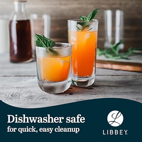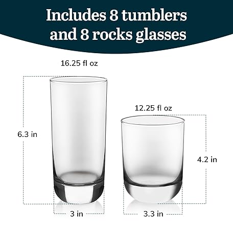 Thông tin sản phẩm Libbey Polaris Tumbler and Rocks Glass Set, Elegant Drinkware Glasses Set,, Tall Drinking Glasses with Modern Clean Lines, Dishwasher Safe Drinking Glasses Set of 16