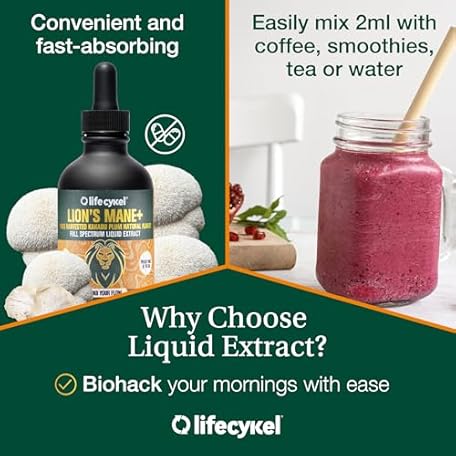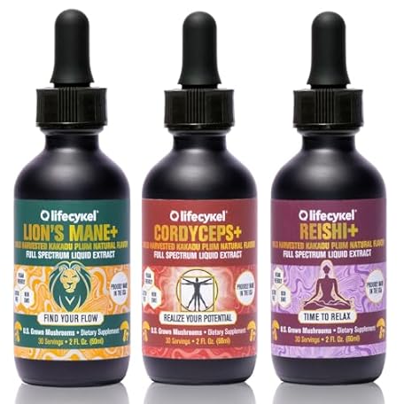 Thông tin sản phẩm Life Cykel Professional Athletes Pack - Reishi, Lion's Mane & Cordyceps Mushroom Extract- Full-Spectrum Mushroom Tincture for Energy, Focus and Immune Health- Vegan, Non-GMO Formula