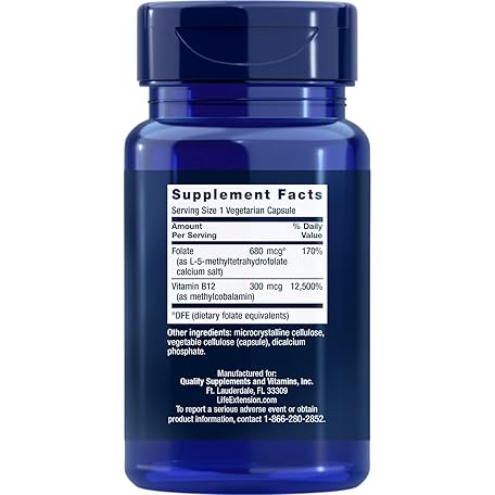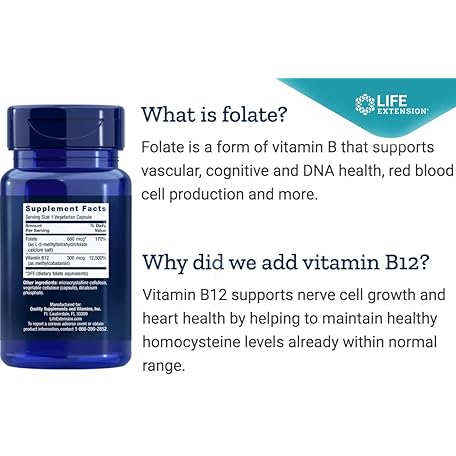 Thông tin sản phẩm Life Extension BioActive Folate & Vitamin B12, 150 Vegetarian Capsules - Non GMO, Gluten Free Supplement