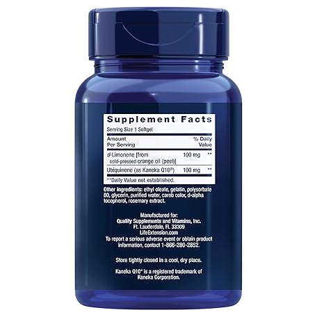 Thông tin sản phẩm Life Extension CoQ10 (Ubiquinone) with d-Limonene – Heart Health, Fight General Fatigue, Better Absorption – Gluten-Free, Non-GMO – 60 Softgels