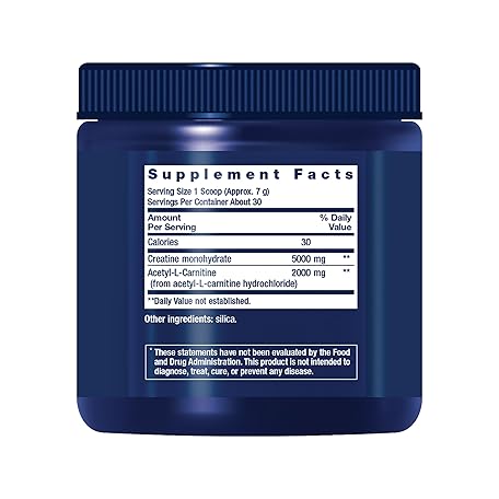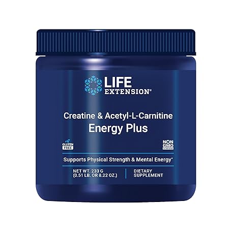 Life Extension Creatine Acetyl-L-Carnitine Energy Plus, Energy Support Supplement, creatine monohydrate, Acetyl-L-carnitine, Gluten-Free, Non-GMO, Vegetarian, 30 Servings