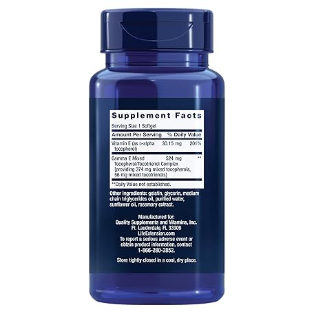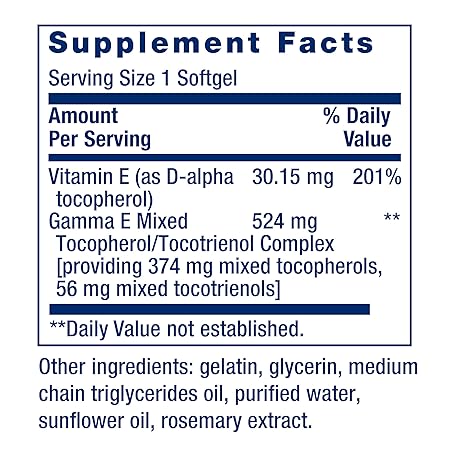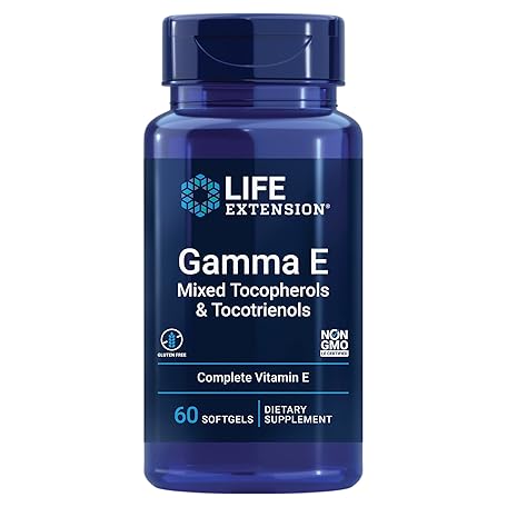 Thông tin sản phẩm Life Extension Gamma E Mixed Tocopherols & Tocotrienols – Complete Vitamin E Spectrum, Antioxidant Protection – Non-GMO, Gluten-Free – 60 Softgels