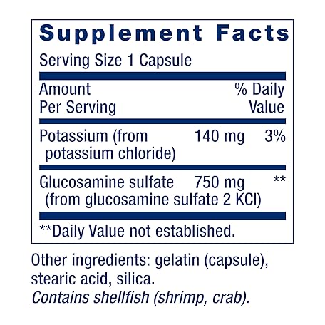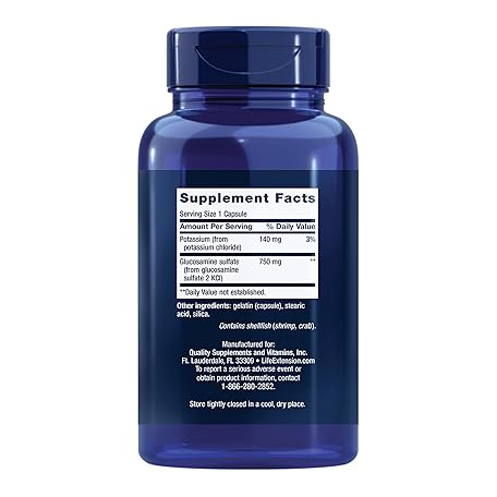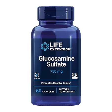 Thông tin sản phẩm Life Extension Glucosamine Sulfate, 750 mg, Supports Knee Comfort and Joint Health, Gluten-Free, Non-GMO, 60 Capsules