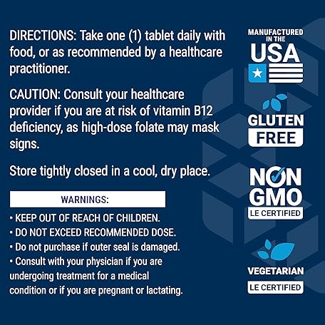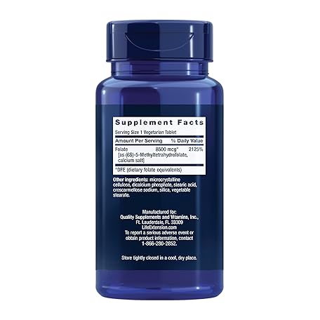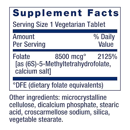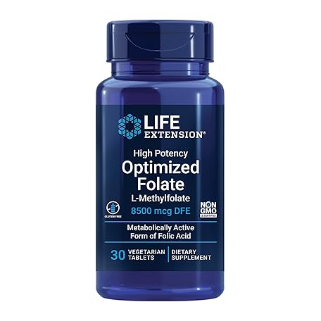 Thông tin sản phẩm Life Extension High Potency Optimized Folate – L-methylfolate – Folic Acid, 8500 mcg DFE – Heart & Brain Support, Healthy Homocysteine Levels – Gluten-Free, Non-GMO, Vegetarian – 30 Tablets