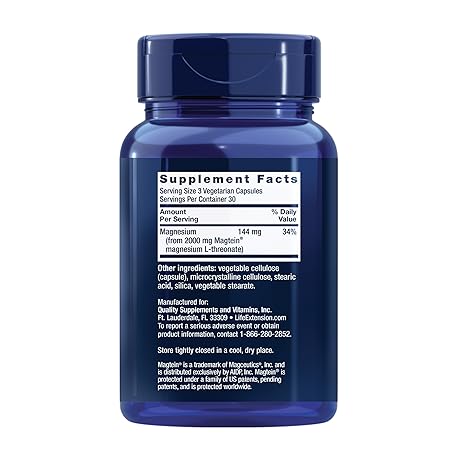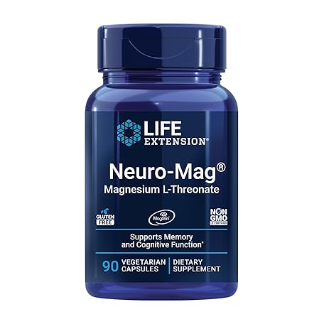 Thông tin sản phẩm Life Extension Neuro-Mag Magnesium L-Threonate, Memory Health, Quick Thinking, Cognitive Health Support, Vegetarian, Non-GMO, 90 Vegetarian Capsules (144 mg from 2000 mg Magtein magnesium L-threonate
