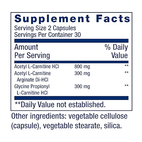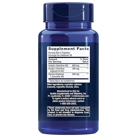 Thông tin sản phẩm Life Extension Optimized Carnitine, Three Forms of L-carnitine, Promotes Heart & Brain Health, Gluten Free, Non-GMO, Vegetarian, 60 Capsules