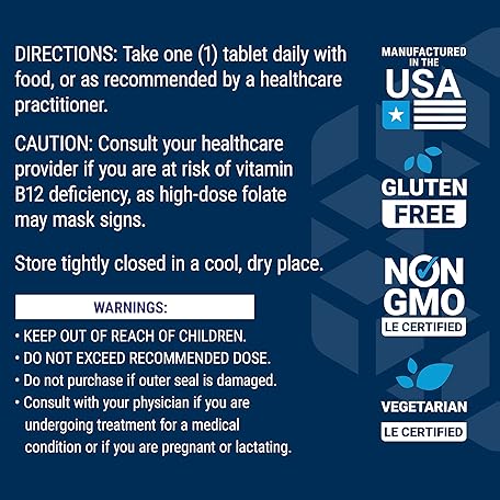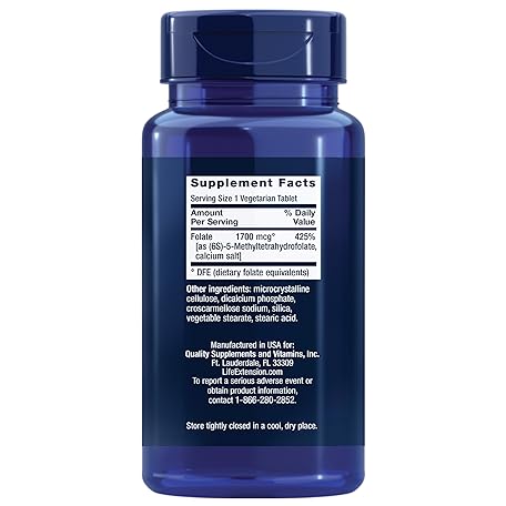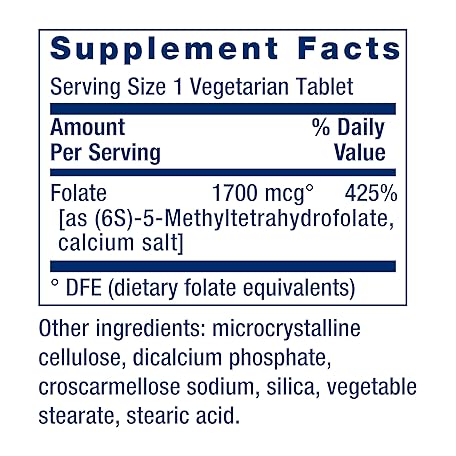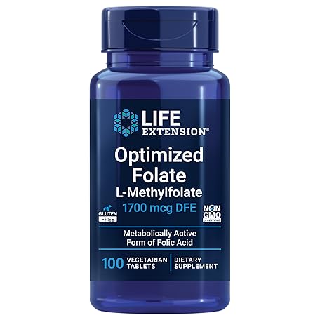 Thông tin sản phẩm Life Extension Optimized Folate – L-methylfolate – Heart & Brain Support, Healthy Homocysteine Levels – Non-GMO, Gluten-Free, Vegetarian – 1700 mcg DFE, 100 Vegetarian Tablets