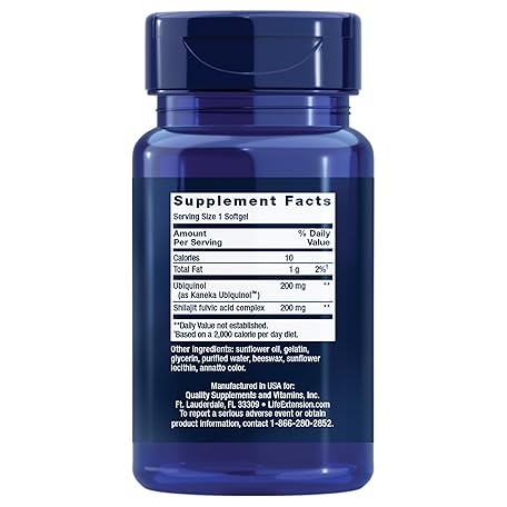 Thông tin sản phẩm Life Extension Super Ubiquinol CoQ10 with Enhanced Mitochondrial Support – 200 mg, Shilajit – Promotes Heart Health, Cell Energy, Oxidative Stress – Gluten-Free, Non-GMO – 30 Softgels