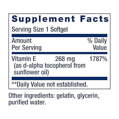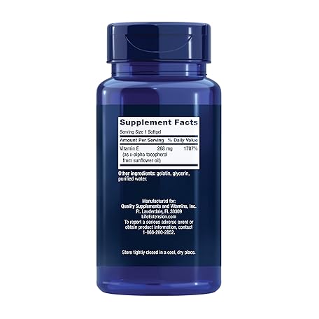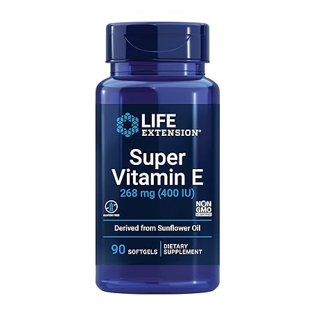 Thông tin sản phẩm Life Extension Super Vitamin E, 268 mg (400 IU), Non-Synthetic Vitamin E Supplement Promotes Whole-Body Health, Gluten-Free, Non-GMO, 90 softgels