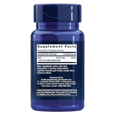 Thông tin sản phẩm Life Extension Zinc Lozenges – Citrus-Orange Flavor – for Healthy Protein Synthesis & Immune Health - Inflammation Management Supplement - Gluten-Free, Non-GMO – 60 Vegetarian Lozenges