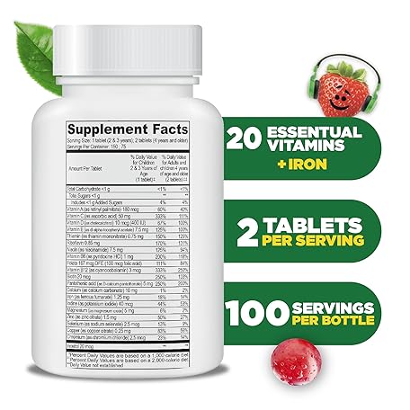 Thông tin sản phẩm Lifeable Multivitamin & Multimineral with Iron Chewables for Kids – Vegetarian – Gluten Free Vegetarian – Great Tasting - Natural Flavored Pectin Chews with Vitamins A, B, C, D & E – 150 Count