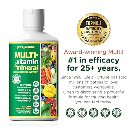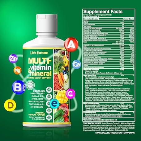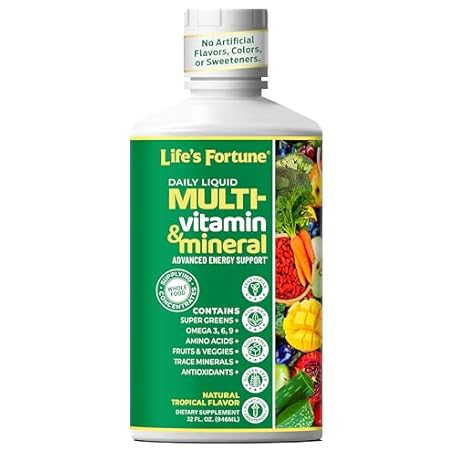 Thông tin sản phẩm Life's Fortune Liquid Multivitamin for Adults Men & Women, Teens – High Absorption Daily Vitamins – Trace Minerals, Amino Acids with Biotin, L-Arginine, Potassium – Tropical Flavor, Sugar Free, 32 oz