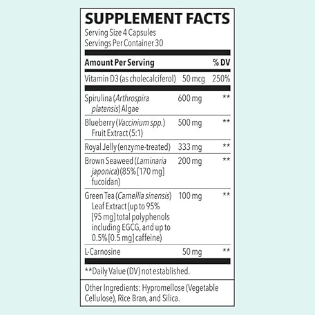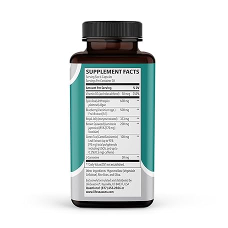 Thông tin sản phẩm LifeSeasons Stem Boost-R - Stem Cell Support - Naturally Repair Damaged Tissue - Vitamin Supplement Rich in Antioxidants - Royal Jelly, Spirulina, Blueberry, Brown Seaweed & L-Carnosine - 120 Capsules