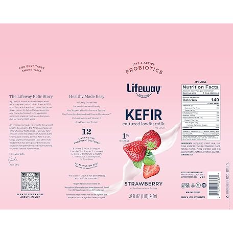 Thông tin sản phẩm Lifeway Low Fat Kefir - 10g Protein, 12 Live Active Probiotic Cultures, Up to 99% Lactose Free, Gluten Free – Strawberry, 32 oz