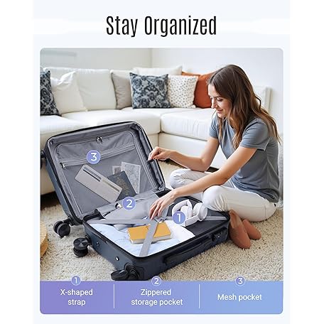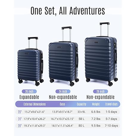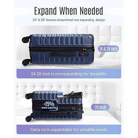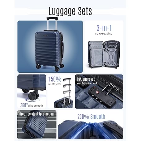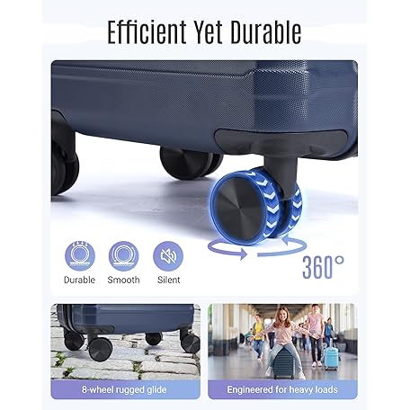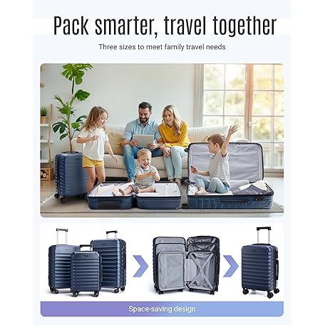 LIGHT FLIGHT Luggage Sets, 3 Piece Durable Suitcase Set with Spinner Wheels, 3 Pcs Hardside Lightweight luggage with TSA Lock, Large Checked Travel Suitcases, 20/24/28 Inch, Dark Blue