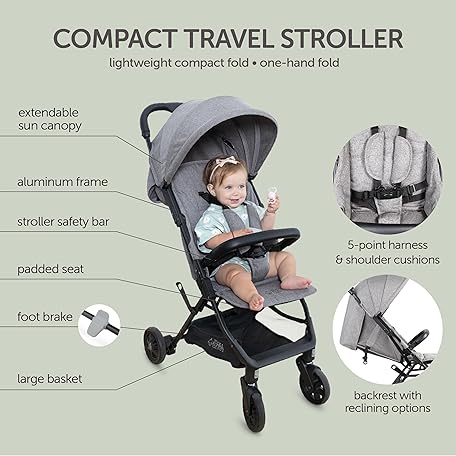 Thông tin sản phẩm Lightweight Travel Stroller for Baby & Toddlers - Easy Fold & Compact Stroller with Canopy, Storage Basket, Multi-Position Recline & Convenient One-Hand Fold (Grey)