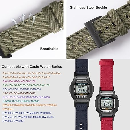 Sản phẩm Lijinlan Nylon Strap Compatible with Casio G-shock Watch GW100/GA100/GA120/GA400/GD100/GD110/GD350/ DW-D5500 /DW5600E/ DW6900/DW-9052/GWM5610, Replacement Canvas Band for Gshock đang được bán với giá ưu đãi là $17.4182 tại nước Mỹ.