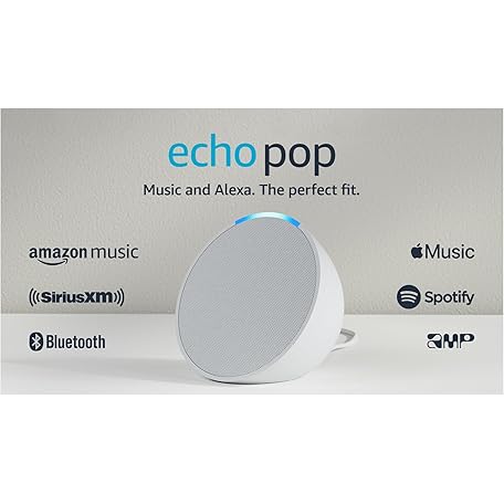 Like-New Amazon Echo Pop (newest model), Our smallest Alexa speaker, Fits in any room, Glacier White