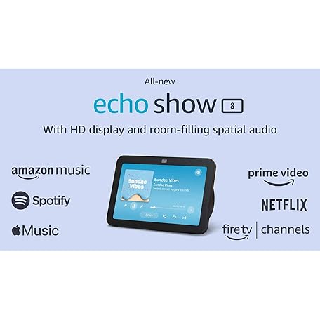 Like-New Amazon Echo Show 8, With Spatial Audio, Smart Home Hub, ideal for open living spaces, includes Alexa, Charcoal