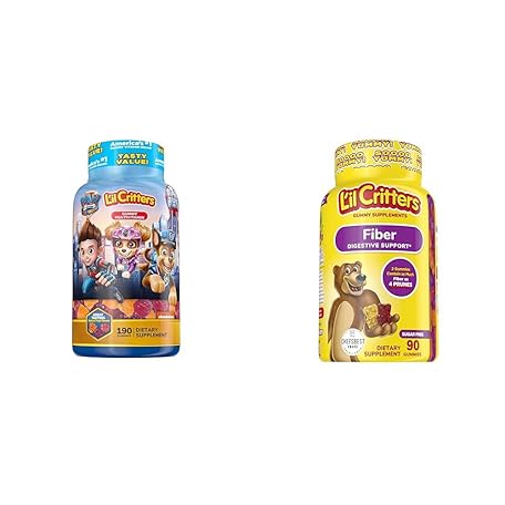 Thông tin sản phẩm L'il Critters Paw Patrol Gummy Vites Multivitamin for Kids, 190 Gummies and L'il Critters Fiber Gummy Supplement for Kids, 90 Gummies