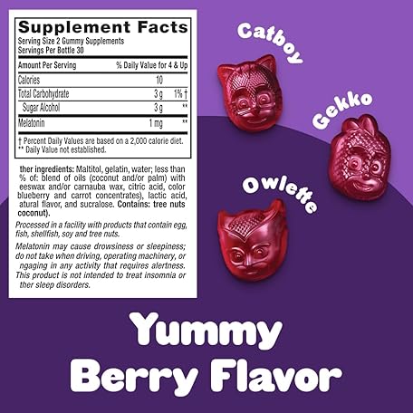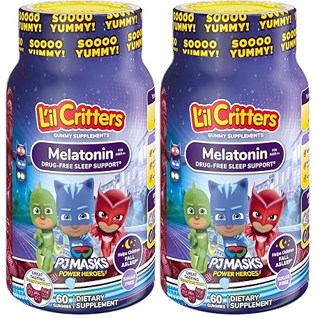 Thông tin sản phẩm L'il Critters PJ Masks Gummy Melatonin Supplement for Kids, Drug-Free Sleep Support, 60 Gummies (Pack of 2)