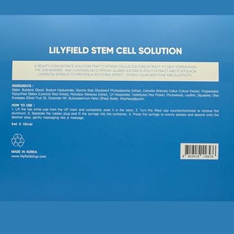 Thông tin sản phẩm LILYFIELD Stem Cell Solution 50ml (5ml x 10 Ampoules) – Hydrating Hyaluronic Acid Serum with Stem Cells, Peptides & Vitamin C | Korean Skincare for Moisturized, Smoother-Looking Skin, All Skin Types