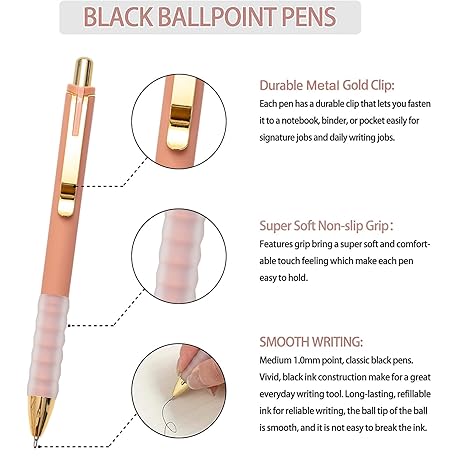Sản phẩm Linbsunne Ballpoint Pens Black Medium Point 1mm Pen with Super Soft Grip Ball Point Pen for Men Women Retractable Pens (gold-12 pcs) đang được bán với giá ưu đãi là $9.7991 tại nước Mỹ.