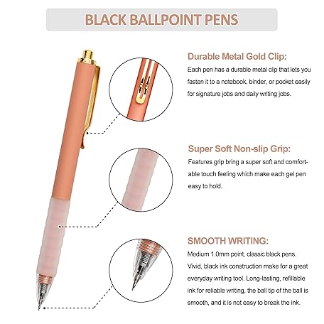 Sản phẩm Linbsunne Ballpoint Pens Medium Point 1mm Black Ink Work Pen with Super Soft Grip Ball Point Pen for Men Women Retractable Office Pens (Gold Clip-6 count) đang được bán với giá ưu đãi là $6.0168 tại nước Mỹ.