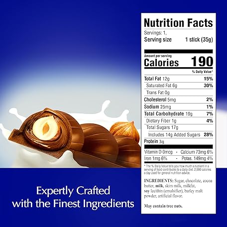 Thông tin sản phẩm Lindt CLASSIC RECIPE Whole Hazelnut Milk Chocolate Stick, Milk Chocolate Candy with Whole Hazelnuts, 1.2 oz.