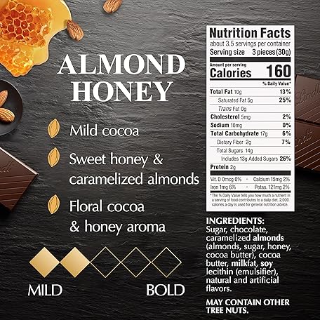 Thương hiệu Lindt là cái tên nổi tiếng được rất nhiều khách hàng trên thế giới chọn lựa. Với kiểu dáng đẹp mắt, sang trọng, sản phẩm Lindt EXCELLENCE Almond with a Touch of Honey Dark Chocolate Bar, Dark Chocolate Candy, 3.5 oz. Bar (12 Pack) là sự lựa chọn hoàn hảo nếu bạn đang tìm mua một món cho riêng mình.