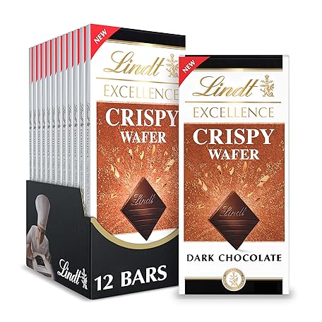 Lindt EXCELLENCE Crispy Wafer Dark Chocolate Candy Bar, Dark Chocolate with Crispy Wafer Pieces, 3.5 oz. Bar (12 Pack)