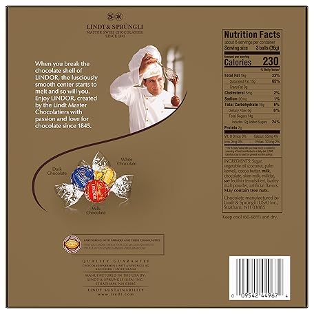 Thông tin sản phẩm Lindt LINDOR Assorted Chocolate Candy Truffles Modern Gift Box, Assorted Chocolate Candy with Smooth, Melting Truffle Center, 7.6 oz.