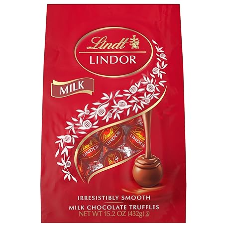 Thông tin sản phẩm Lindt LINDOR Milk Chocolate Candy Truffles, Milk Chocolate with Melting Truffle Center, 15.2 oz. Bag