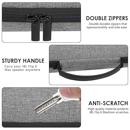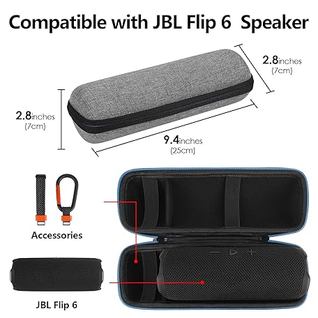 Linkidea Speaker Carrying Case Compatible with JBL Flip 3/4/ 5/6 Speaker, Replacement Hard Shell Protective Travel Bag with Cable, Charger Storage, Shockproof (Grey)