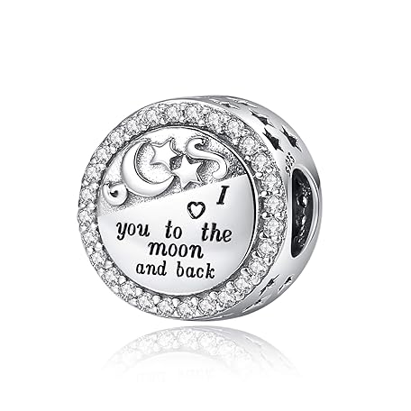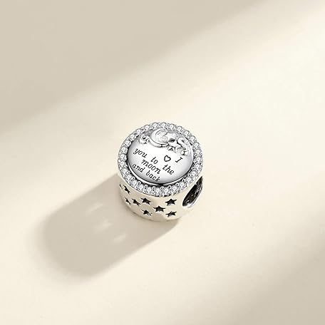 Linorui 925 Sterling Silver Charms Fit Pandora Charms Bracelet I Love You to The Moon and Back Fit Wife Mom Christmas Birthday Gift