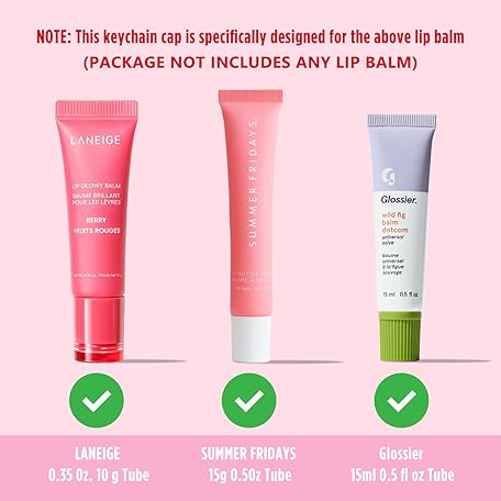 Thông tin sản phẩm Lip Balm Keychain Cap for Laneige, Summer Friday and Glossier, Lip Balm Holder for Lanyard or Bag, Lip Gloss Keychain for Women,Replacement Cap with Stopper Prevent Spills