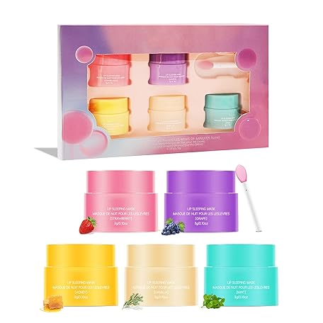 Sản phẩm Lip Sleeping Mask Set-5 Pcs Lip Balm Hydrating Lip Mask Overnight Lip Treatment Care for Dry Cracked Lips,Day &Night Moisturize &Nourish Korean Lip Gloss Women to Improve Lip Color With Shea Butter đang được bán với giá ưu đãi là $10.8891 tại nước Mỹ.
